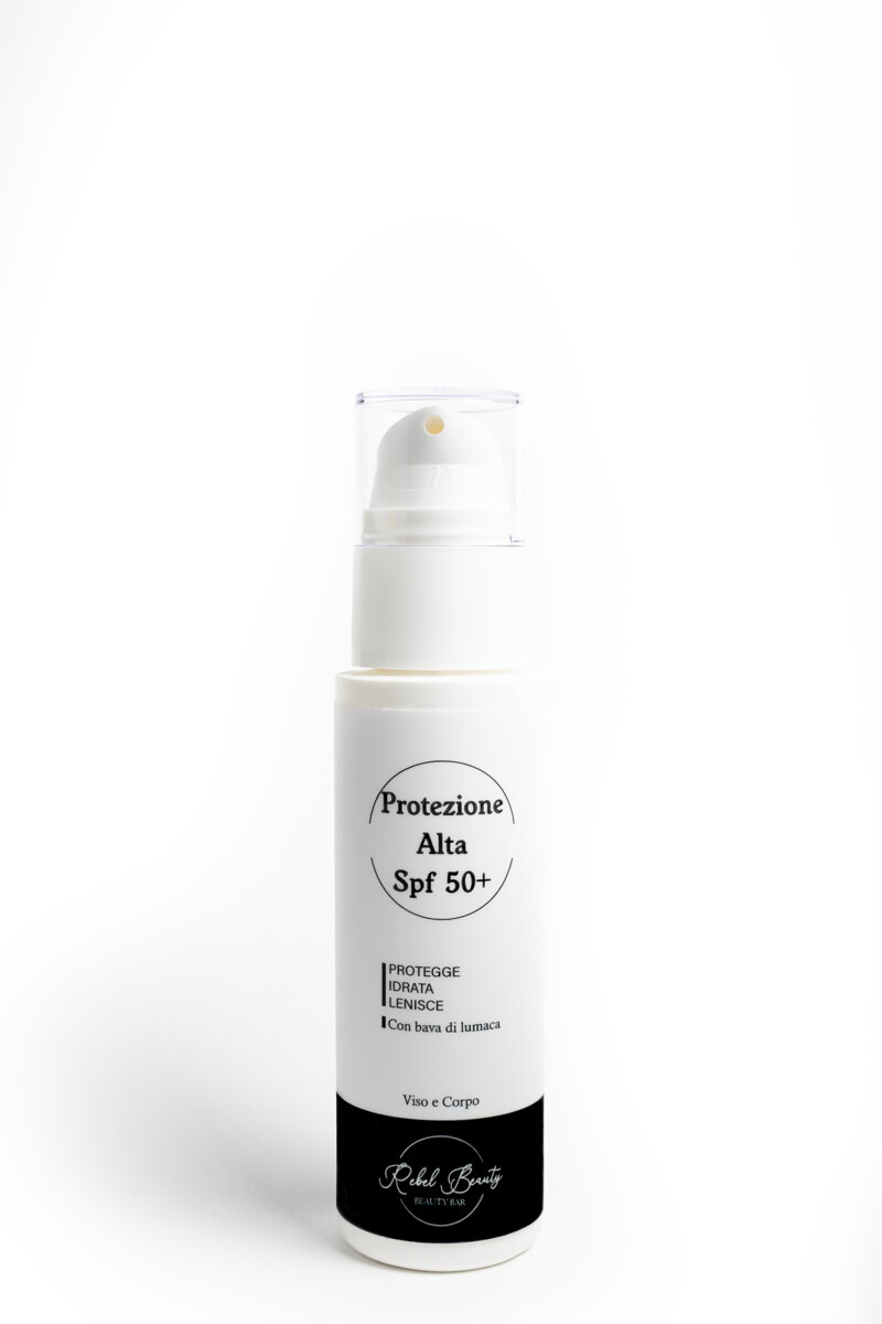 Spray a largo spettro SPF 50+ resistente all' acqua. Garantisce un' applicazione uniforme pratica e veloce. Indicata per le prime esposizioni solari, per pelli sensibili, bambini, fototipi I e II, offre una protezione molto alta e sicura contro i raggi UVB e UVA. Bava di lumaca e Vitamina E svolgono un' azione lenitiva ed idratante donando all' epidermide morbidezza e luminosità. Non unge e si assorbe rapidamente.